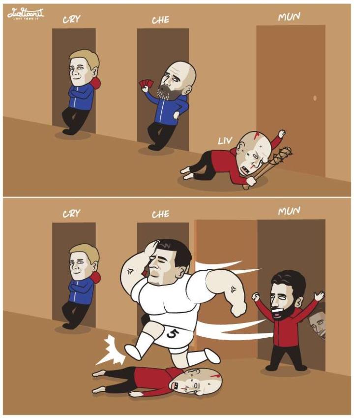 护林之战:利物浦失利?曼联逆袭?双红会利物浦1-2不敌曼联 Liverpool 1-2 Man Utd 漫画作者:Kaew Justtoonit,来自泰国的艺术家。